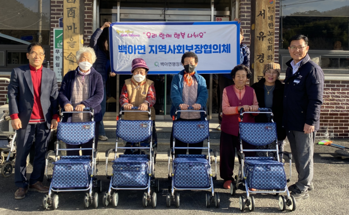 한편 성인용 보행기 지원사업은 백아면 맞춤형 복지팀과 지역사회협의체가 함께하는 특화사업으로 거동이 불편한 대상자 사전 파악하여 대상자 40명을 백아면 지역사회보장협의체 위원들의 회의를 거쳐 심의 의결로 선정하였다.