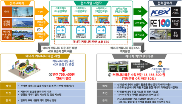 또한, 에너지 커뮤니티 타운형 스마트허브는 불용되는 신재생 에너지를 저렴하게 구입해 에너지저장시스템(ESS)에 저장한 후 낮은 단가로 마을주민에게 전기를 공급해 에너지 비용을 절감할 계획이다.