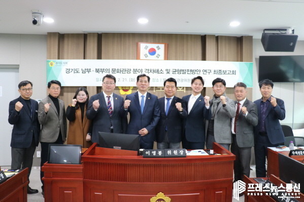 [프레스뉴스] 김대일 기자= 경기도의회 문화체육관광연구회(회장 이영봉, 더민주 의정부2)는 21일 15시 문화체육관광위원회 회의실에서 ‘경기도 남부·북부의 문화관광 분야 격차해소 및 균형발전방안 연구’ 최종보고회를 개최했다.