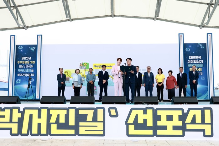 박동식 시장은 “박서진 길 선포를 계기로 우주항공도시 사천시와 가수 박서진의 명성이 대한민국을 넘어 K-트롯으로 전 세계를 향해 퍼져나가길 바란다”고 말했다.