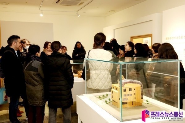 | ▲주한프랑스대사관 직원들이 김중업건축박물관 전시를 관람하고 있다.(사진=안양시) |