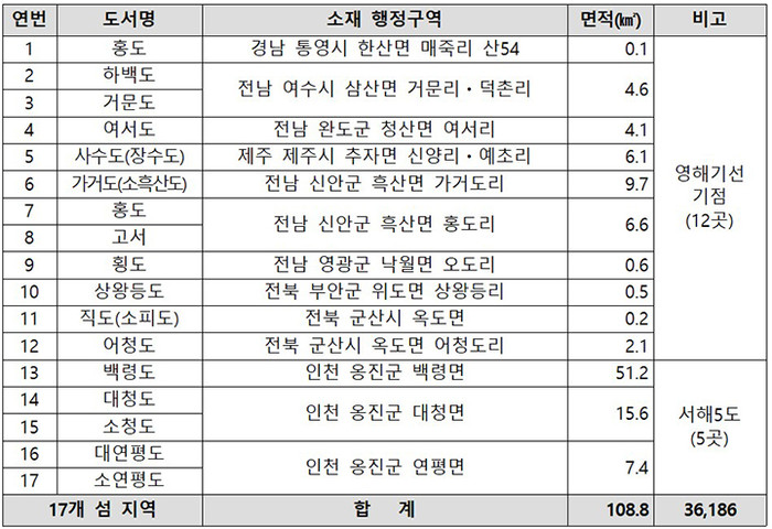 | ▲외국인 토지거래허가구역 신규 지정 17개 도서. |