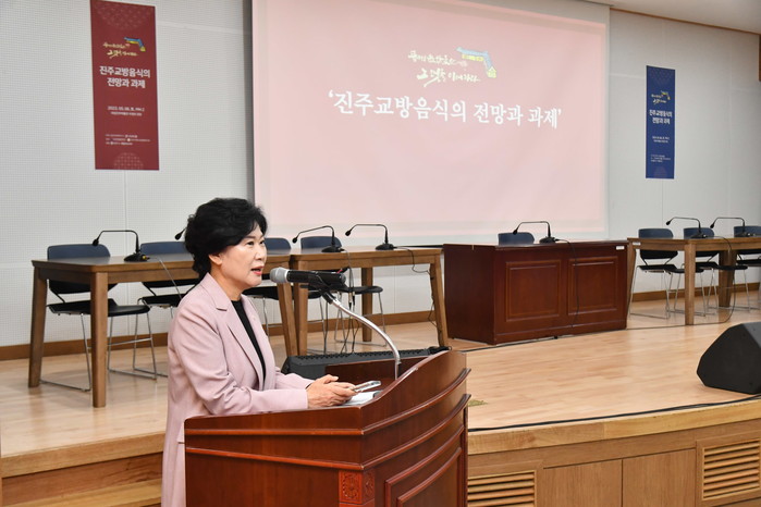 [프레스뉴스] 정재훈 기자= 진주시의회 의원 연구단체인 진주 교방문화 연구회가 지난 6일 한국교방문화학회와 공동주관으로 ‘진주교방음식의 전망과 과제’라는 주제로 학술대회를 열었다고 밝혔다.