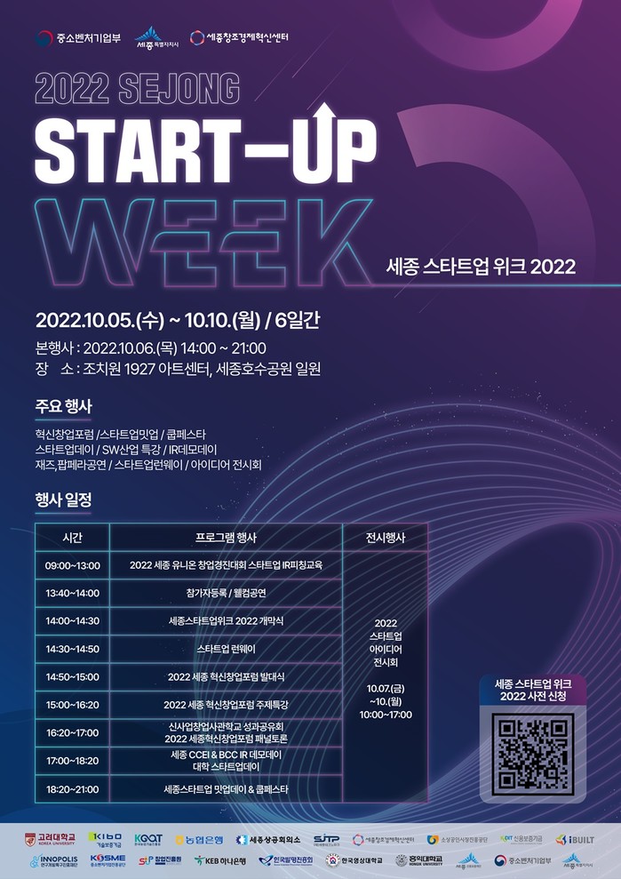또 2022 세종 혁신창업 포럼 발대식 및 비전 선포식, 세종 IR 데모데이, 2022 쿱(COOP) 페스타, 창업기업제품·서비스 고객검증 데이 등 프로그램도 진행한다.