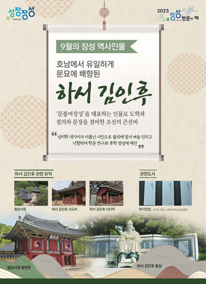 ▲9월의 장성 역사 인물 ‘하서 김인후’ 선생 선정 포스터 (사진제공=장성군) |