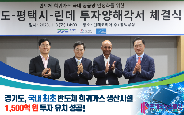 [프레스뉴스] 장현준 기자= 전 세계적 경기침체가 우려되는 가운데 경기도가 세계 최대 산업용 가스 생산업체인 미국 ‘린데(Linde)’사 유치에 성공하면서 새해 초부터 1,500억 원 규모의 성공적 투자유치 행보를 시작했다.