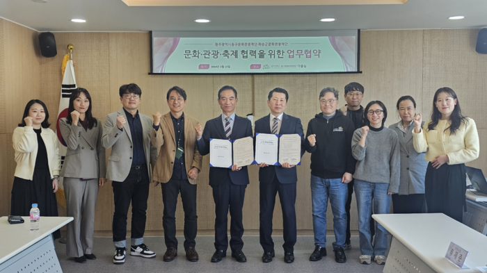 [전남=프레스뉴스] 박정철 기자=화순군(군수 구복규)은 19일 화순군문화관광재단(대표이사 강신기)과 광주광역시 동구문화관광재단(대표이사 문창현)이 문화·관광·축제 상호협력 업무협약을 맺고 재단 간 상호협력을 약속했다고 밝혔다.