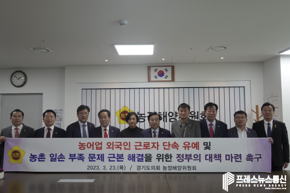 [프레스뉴스] 김대일 기자= 경기도의회 농정해양위원회(김성남 위원장)는 23일 농어업 외국인 근로자에 대한 단속 유예 및 농촌 일손 부족 문제의 근본적 해결을 위한 정부의 대책 마련을 촉구했다.