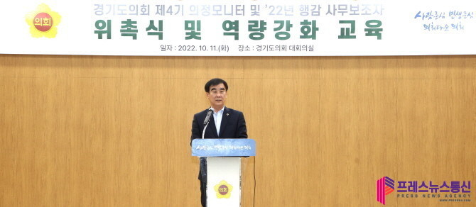 | ▲ 염종현 경기도의회 의장이 11일 대회의실에서 열린 제4기 의정모니터, 행정사무감사 사무보조자 위촉식 및 역량강화 교육에서 인사말을 하고 있다.(사진=경기도의회) |