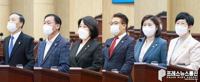 이날 시정질문에는 한명훈 박태순 황은화 의원이, 5분 발언에는 이대구 박은정 박은경 의원이 참여했으며, 의원들은 시정질문과 5분 발언을 통해 지역 현안에 대한 날카로운 문제의식을 선보이면서 시에 적극적인 대응을 주문했다.