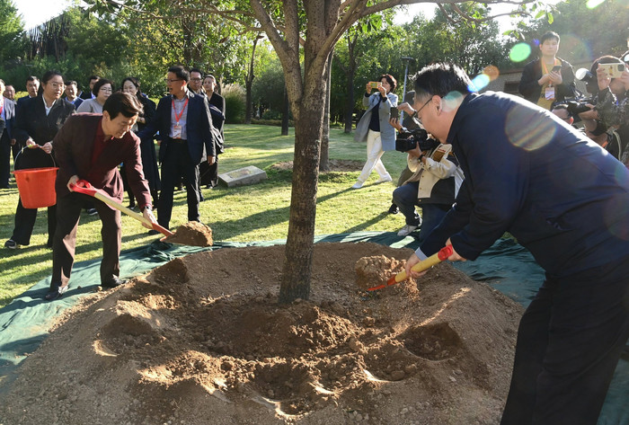 | ▲정저우시와 진주시의 꾸준한 우정에 대한 기념식수 행사 (사진=진주시) |