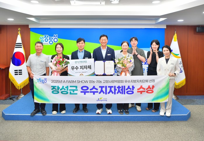 [전남=프레스뉴스] 박정철 기자=장성군이 지난 8월 29~31일 서울 ‘에이티(aT)센터’에서 열린 ‘2025년 에이팜쇼(A FARM SHOW) 창농·귀농 고향사랑박람회’에서 ‘우수지자체상’을 수상했다.