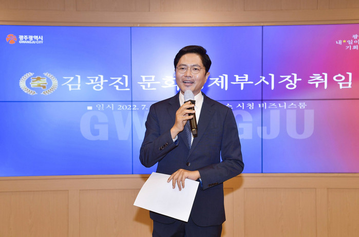 강기정 시장은 “새로운 광주시대를 여는 발걸음에 동참해 주신 김광진 문화경제부시장께 감사하다”며 “균형발전, 신활력, 청년, 국방이라는 키워드에 맞게 광주가 활력이 넘치고, 기회가 넘치는 도시로 성장하는데 혼신의 노력을 다해줄 것으로 기대한다”고 말했다.
