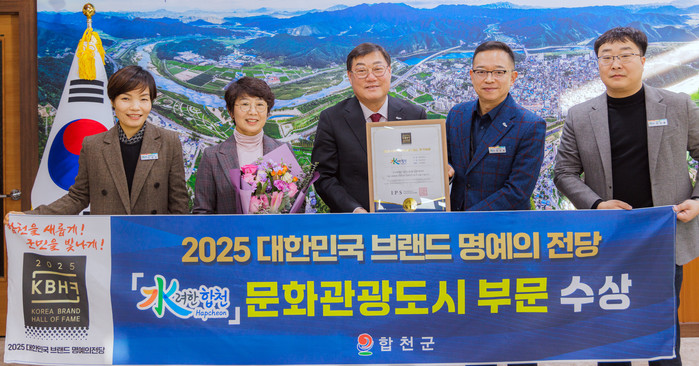 | ▲합천군은 대표 브랜드 ‘수려한합천’이 ‘2025 대한민국 브랜드 명예의전당’ 문화관광도시 부문에서 수상했다고 3일 밝혔다. (사진=합천군) |