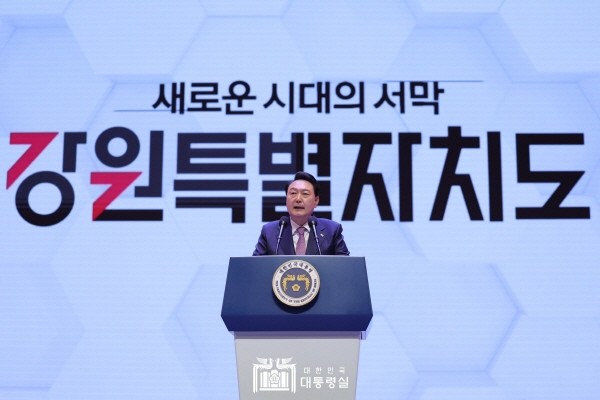 또 “그동안 강원도는 국가안보와 환경을 이유로 해서 불필요한 중층 규제에 묶여 있었고, 강원도민들께서 많은 불편과 불이익을 감내해야만 했다”며 “이제 특별자치도는 발전의 걸림돌을 스스로 제거함으로써 첨단산업과 관광산업에 활력을 불어넣게 될 것”이라고 강조했다.