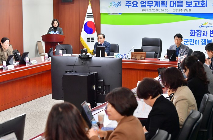 | ▲장성군이 25일 군청 상황실에서 올해 중앙부처‧전라남도 주요업무 추진계획 대응 보고회를 열었다.(사진제공=장성군) |