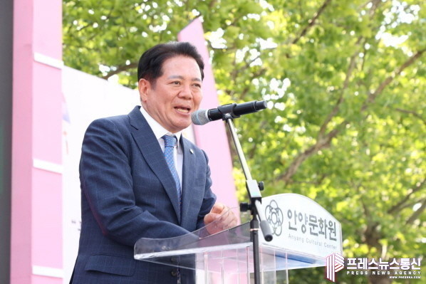 | ▲최대호 안양시장이 지난 8일 동안구 평촌중앙공원에서 열린 제38회 안양단오제에서 기념사를 하고 있다.(사진=안양시) |