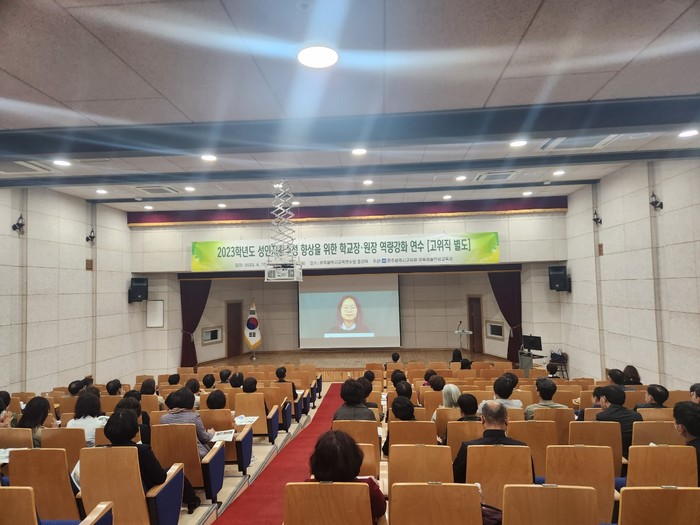 이날 연수 강사로는 한국젠더문화연구원 양동옥 원장을 초빙했다. 양 원장은 성평등한 조직문화 조성과 성희롱·성폭력 방지를 위해서는 학교(원)장의 전문성과 성인지 감수성이 중요하다고 강조했다. 이어 “학교장은 사안 발생 시 신속하게 피해 학생과 교직원을 보호할 의무가 있다”며 “학교 구성원 모두는 직급‧나이‧성별에 상관없이 존중의 언행을 실천하고 성역할이 아닌 일 역할을 기대하고 상대방의 경계를 존중해야 한다”고 말했다.