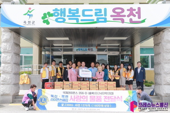 [프레스뉴스] 류현주 기자= 옥천라이온스클럽(회장 김현수)과 목련라이온스클럽(회장 김희진)이 8일 옥천군청을 방문해 후원물품을 기탁했다.