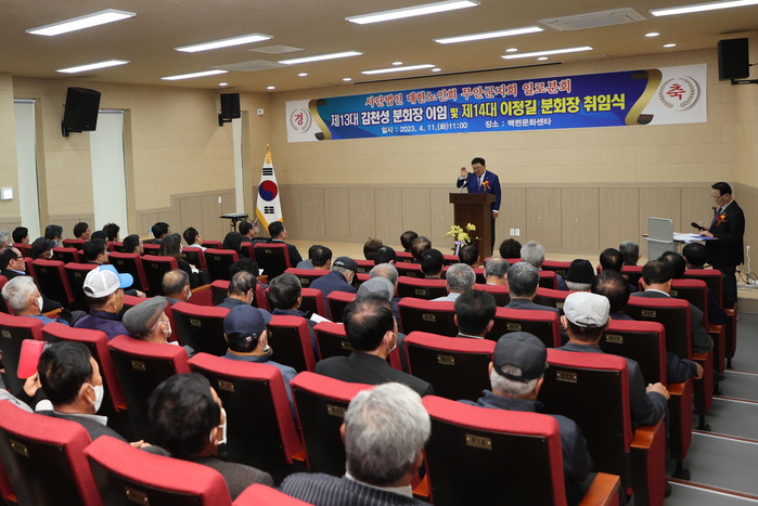 [전남=프레스뉴스] 강래성 기자= 대한노인회 무안군지회 일로읍분회는 4월 11일 일로읍 백련문화센터에서 제13·14대 분회장 이·취임식을 개최했다.