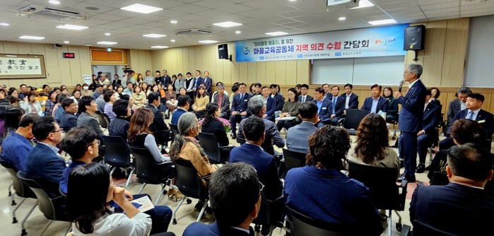 | ▲산청교육지원청(교육장 김덕현)은 2024년 10월 29일 지원청 3층 대회의실에서 ‘마을교육공동체 활성화 지원 조례’ 폐지의결에 대한 지역 의견 수렴 및 소통 간담회를 개최했다 (사진=산청교육지원청) |