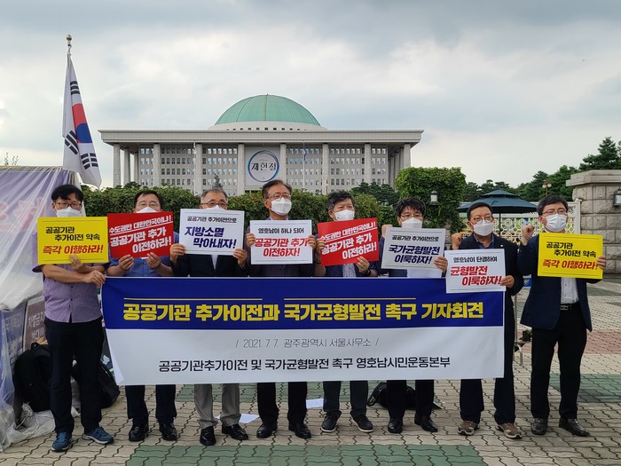 시민운동본부 산하 영·호남의 80여개 시민단체 일동은 현 정치권과 정부에 공공기관 추가 이전 및 출자기업의 이전과 균형발전을 촉구하면서