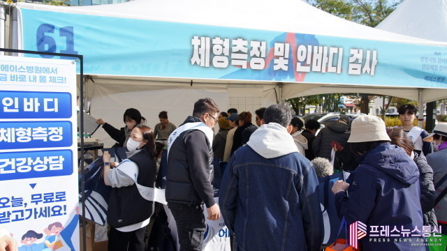 에이스병원은 행사장에서 인바디 검사, 체형 측정, 건강 상담 등 건강 관련 서비스를 무료로 제공했다. 체형 측정은 전신 촬영 후 개인별 체형 상태를 분석해 메시지로 전달했으며, 인바디 검사는 현장에서 즉시 결과지를 출력해 전문 상담과 연계했다.