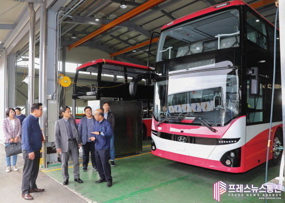 [프레스뉴스] 김대일 기자= 오후석 경기도 행정2부지사가 20일 화성시에 위치한 2층 전기버스 제작 현장을 찾아 차량 제작상황을 점검하고, 관계자들과 차량 생산능력을 확대하여 현재 속도보다 조기에 투입하는 방안에 대해 논의했다.