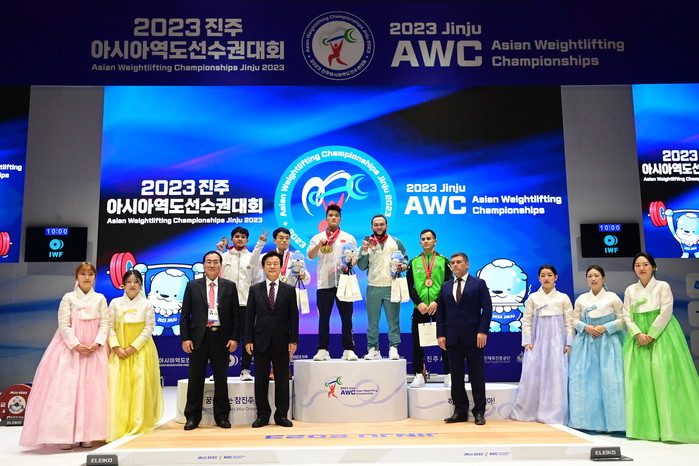 | ▲ 2023 진주아시아역도선수권대회 남자 67kg급 시상식 장면(사진=진주시) |