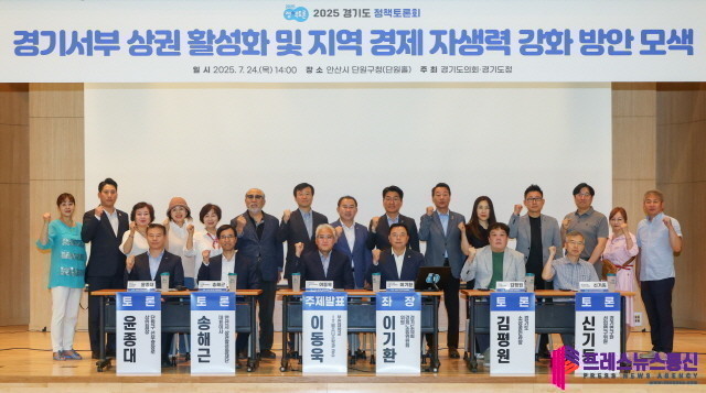 [프레스뉴스] 류현주 기자= 경기도의회 경제노동위원회 이기환 위원(더불어민주당, 안산6)이 좌장을 맡은 「경기서부 상권 활성화 및 지역 경제 자생력 강화 방안 모색」을 위한 토론회가 지난 7월 24일(목) 안산시 단원구청 단원홀에서 개최됐다. 본 토론회는 경기도와 경기도의회가 공동으로 주최하는 ‘2025 경기도 정책토론회’의 일환으로 개최되었다.