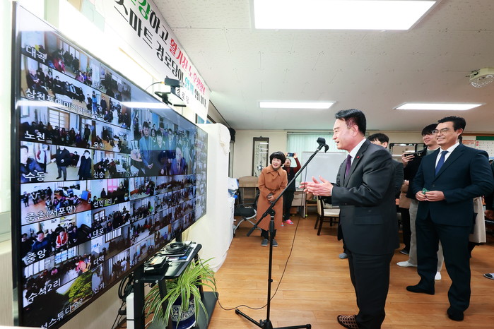 이날 박 시장은 화상회의 시스템을 통해 50개 스마트 경로당 어르신들과 반갑게 인사를 나눴다. 어르신들도 스마트 기기를 통해 실시간 화면을 보며 안부를 전하고 소식을 나누는 새로운 소통 방식에 호기심과 만족감을 보였다.