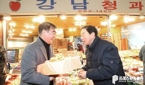 염 의장은 정담회 이후에는 시장 상점들을 차례로 찾아 과일과 떡, 생필품 등을 구매하면서 민생 물가를 살피는 한편, 경제적 어려움을 토로하는 상인들에게는 “전통시장이 살아야 민생도 활기가 돈다”는 격려와 응원을 전했다.