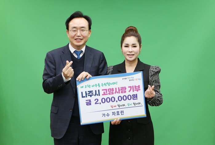 전라남도 나주시(시장 윤병태)는 6일 가수 차효린 씨가 고향사랑기부금 200만원을 기탁했다고 밝혔다.