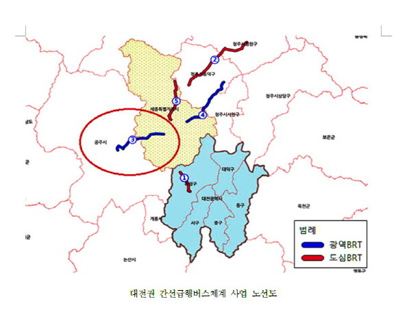 ▲ 대전권 간선급행버스체계 사업 노선도(사진제공=공주시) |