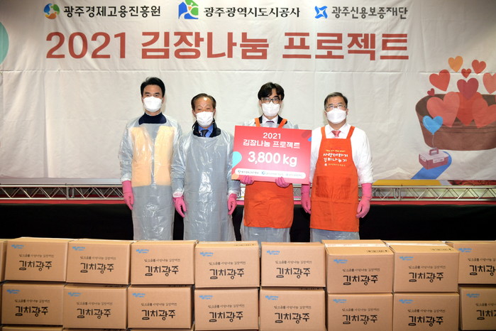 이날 개막 행사에는 광주시도시공사, (재)경제고용진흥원, (재)신용보증재단이 참여해 임직원과 자원봉사자 80여 명과 함께 총 3800㎏의 김치를 담궈 희망디딤돌 광주센터 등 8군데의 사회복지시설에 전달했다.