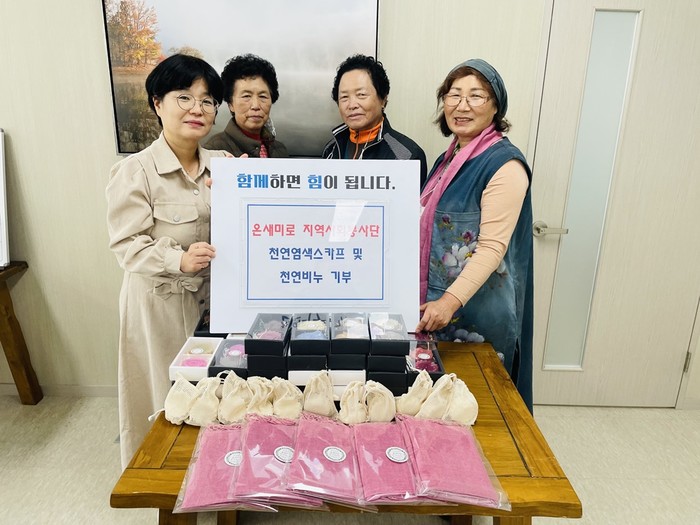 같은 날 협의회 소속 온새미로 지역사회봉사단(단장 박인순)도 협의회 사회공헌센터를 방문, 봉사단원들이 직접 제작한 천연 염색 스카프 등을 기부했다.