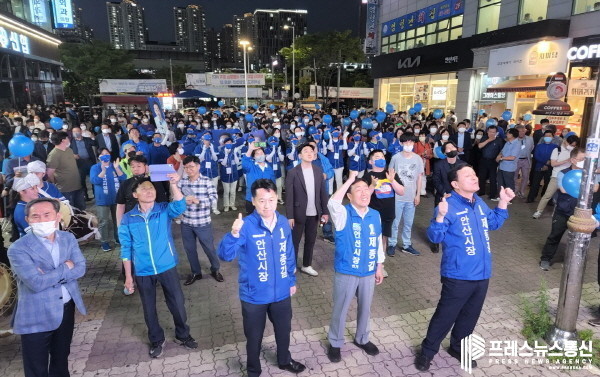 제 후보는 “안산에 구축되는 4호선, 서해안선, 신안산선, KTX, GTX 등 초특급 광역교통망을 기반으로 상록구에 스마트시티, 단원구에 아트시티, 대부도에 마린시티 등 새로운 세 개의 도심을 구축하고 반월공단을 디지털 대전환으로 혁신해 먹거리와 일거리를 창출하겠다. 여기에 노후 고층 아파트를 포함한 관내 모든 재건축을 10년 내에 완성해 35%의 재정자립도를 60%로 끌어 올려 안정되고 튼튼한 안산을 만들겠다.”며 필승유세로 마무리했다.