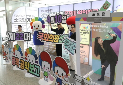 | ▲제22대 국회의원 선거를 보름여 앞둔 24일 오전 수원시 영통구 수원컨벤션센터에서 경기도선거관리위원회 직원들이 정책선거 활성화 홍보캠페인을 하고 있다.(사진= 뉴스1) |