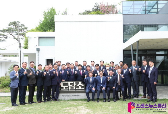| ▲ 25일 오후 도담소에서 열린 민선 2기 경기도 시.군 체육회장 소통간담회에서 김동연 경기도지사와 경기도체육회장, 시.군 체육회장, 도의회 의장 및 문체위 위원장 등이 기념촬영을 하고 있다.(사진=경기도) |