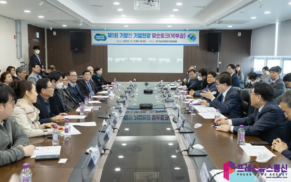 ‘기발한’이란 ‘기업과 기회가 발전한다’는 의미로, 경기도가 직접 기업 현장 의견을 듣고 해결방안을 함께 모색하기 위해 맞손토크를 마련했다. 고양·파주·의정부·양주·포천·동두천·가평·연천 등 북부권역 기업체 관계자를 비롯해, 경기도경제과학진흥원, 경기신용보증재단 등 관계기관, 시군 관계자 등 총 60여 명이 참석했다.