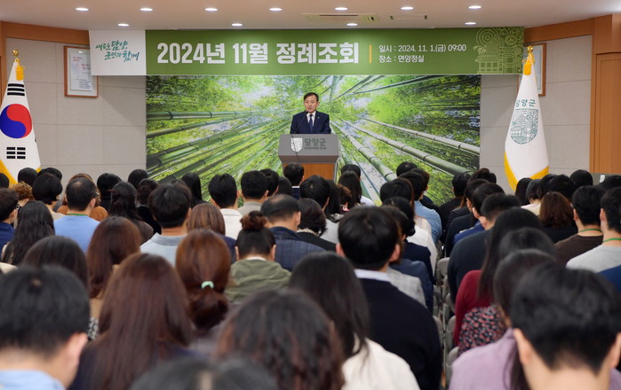 [전남=프레스뉴스] 박정철 기자=담양군(군수 이병노)은 1일 군청 면앙정실에서 공직자 180여 명이 참석한 가운데 11월 정례 조회를 개최했다.