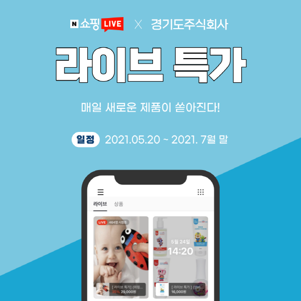 경기도주식회사는 '경기도주식회사 자체 플랫폼을 활용한 라이브커머스 지원 사업'에 선정된 기업 30개사와 5월 20일부터 오는 7월 말까지 라이브커머스 방송을 150회 진행한다고 24일 밝혔다.