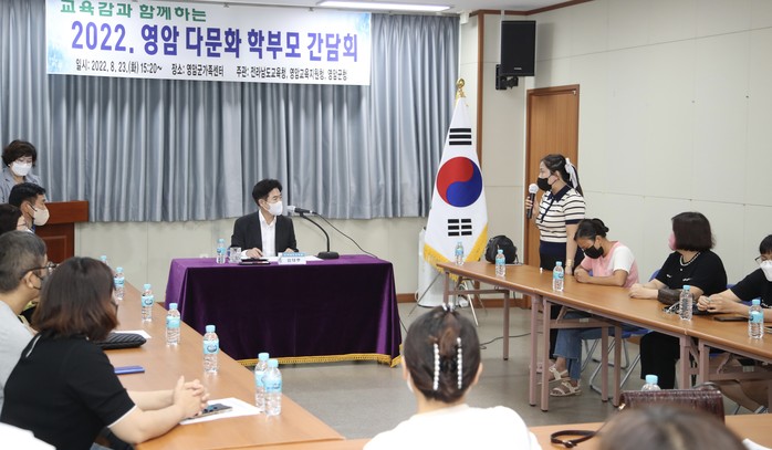 [전남=프레스뉴스] 강래성 기자= 전라남도교육청(교육감 김대중)이 8월 23일(화) 영암군가족센터에서 ‘교육감과 함께하는 영암 다문화 학부모 간담회’를 운영했다.