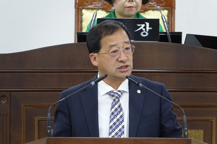 | ▲ 산청군의회 최호림 군의원 5분 자유발언 모습(사진=산청군의회) |