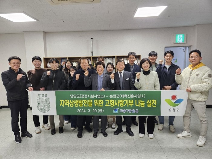 [전남=프레스뉴스] 박정철 기자=담양군 공공시설사업소(소장 정선미)와 순창군 체육진흥사업소(소장 신현수)가 고향사랑기부제 활성화를 위해 순창군 체육진흥사업소에서 상호 기부식을 진행했다고 1일 전했다.