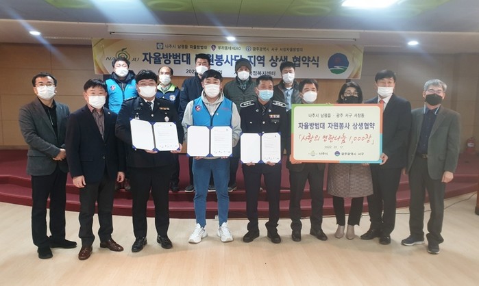 | ▲나주 남평읍-광주 서구 서창동, 자율방범대 상생 협약식 체결/나주시 제공 |