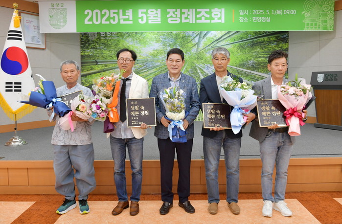 이날 조회에서는 제6회 예쁜정원 콘테스트 수상자와 제53회 보건의 날을 맞아 유공 공무원에 대한 시상이 이뤄졌다.