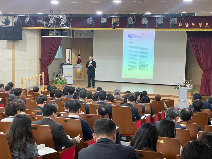 이어 진행된 특강에서는 김승호 전 함평교육장이 강사로 나서 독서인문교육의 새로운 패러다임을 제시하며 “미래교육으로 나아가기 위해 왜 독서인문교육이 왜 중요한가?”에 대한 생각을 함께 나눴다.