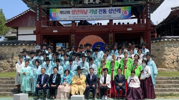 이날 행사는 거창향교 최종복 전교와 거창향교 및 유도회 임원, 성년자 등 100여 명이 참석한 가운데 올해 만 19세가 되는 성년에게 자부심과 긍지를 심어주는 전통 성년례가 거행됐다.