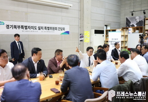 | ▲28일 오후 파주 사회복지책마을에서 김동연 경기도지사를 비롯한 경기도의회 경기북부특별자치도 설치 특별위원, 부지사 및 관계 공무원 등이 참석한 가운데 경기도의회 경기북부특별자치도 설치 특별위원회 간담회가 열렸다.(사진= 경기도) |